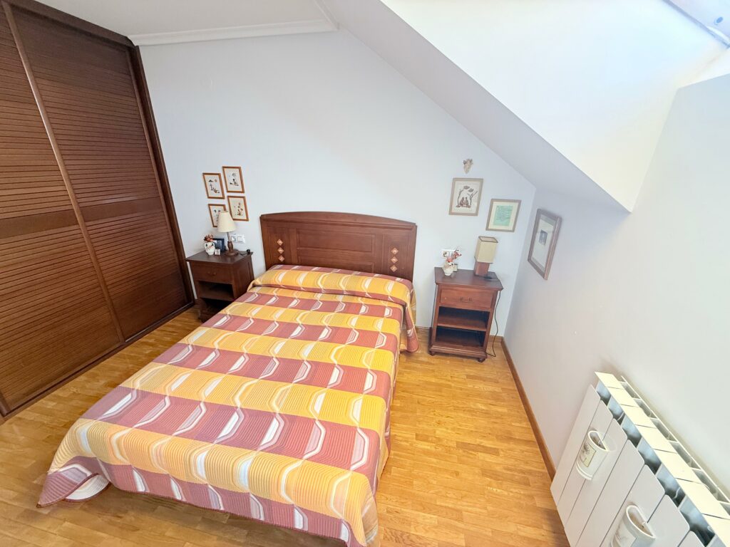 - Dormitorio: Un tranquilo santuario de descanso, con un práctico armario empotrado para una organización perfecta. Tiene ventana tipo “Velux” con store eléctrico.